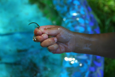 I really like this picture. It has a slick, wet quality all over it, plus, Corynn's squeezing the stuffing out of a tadpole!